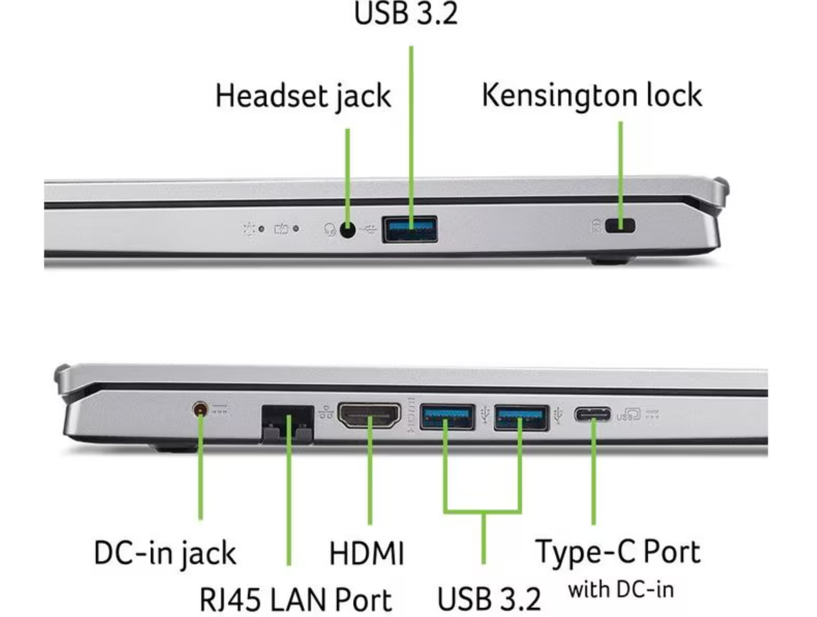 Beim Speicherplatz profitieren Sie von einer schnellen M.2 NVMe SSD Festplattemit grosser 512 GBKapazität. Der Akku hält je nach Anwendung bis zu 7 Stunden. Der Acer Aspire Go 15 besitzt ein edles silbernes Gehäuse, welches sehr robust ist.